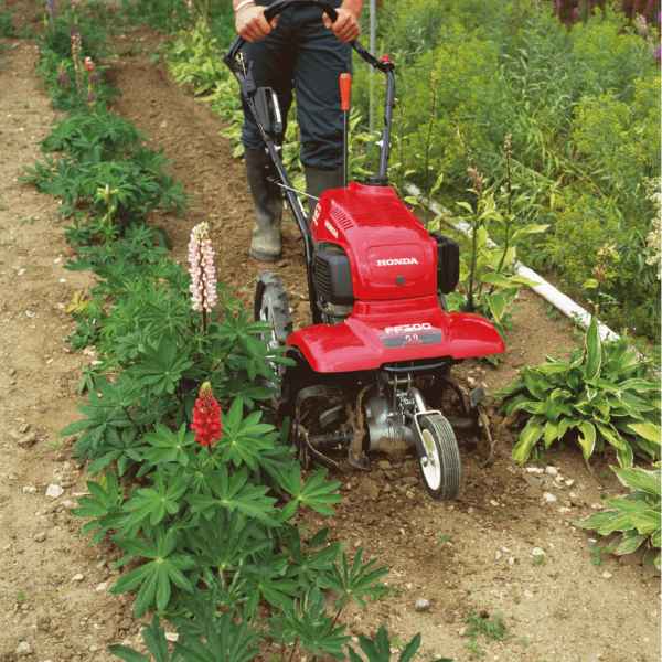 Roterende tuinfrezen zijn sterk en betrouwbaar. De Honda FF 300 is enorm makkelijk te bedienen en zijn speciale tegengesteld draaiende rotors snijden moeiteloos door de aarde.