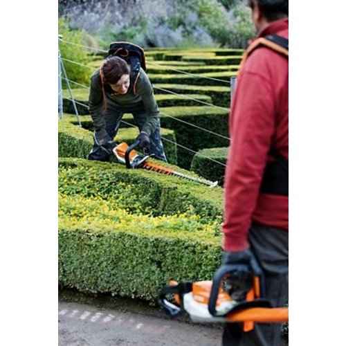De STIHL HSA 130 T is een zeer krachtige en robuuste accuheggenschaar. Ze werkt met lithium-ion-accu’s van het STIHL AP systeem. Deze accuheggenschaar is dan ook zeer stil, waardoor je zelfs in geluidsgevoelige omgevingen je heg kan snoeien. De multifunctionele handgreep kan 90° naar links of rechts draaien. Zo geniet je bij elke snede van een perfect ergonomische werkhouding. Bovendien maakt de beugelgreep het werk minder vermoeiend, en dit in elke snoeirichting. De opgeschroefde snij- en zwaardbeschermers verhogen de veiligheid en beschermen de snijgarnituur.