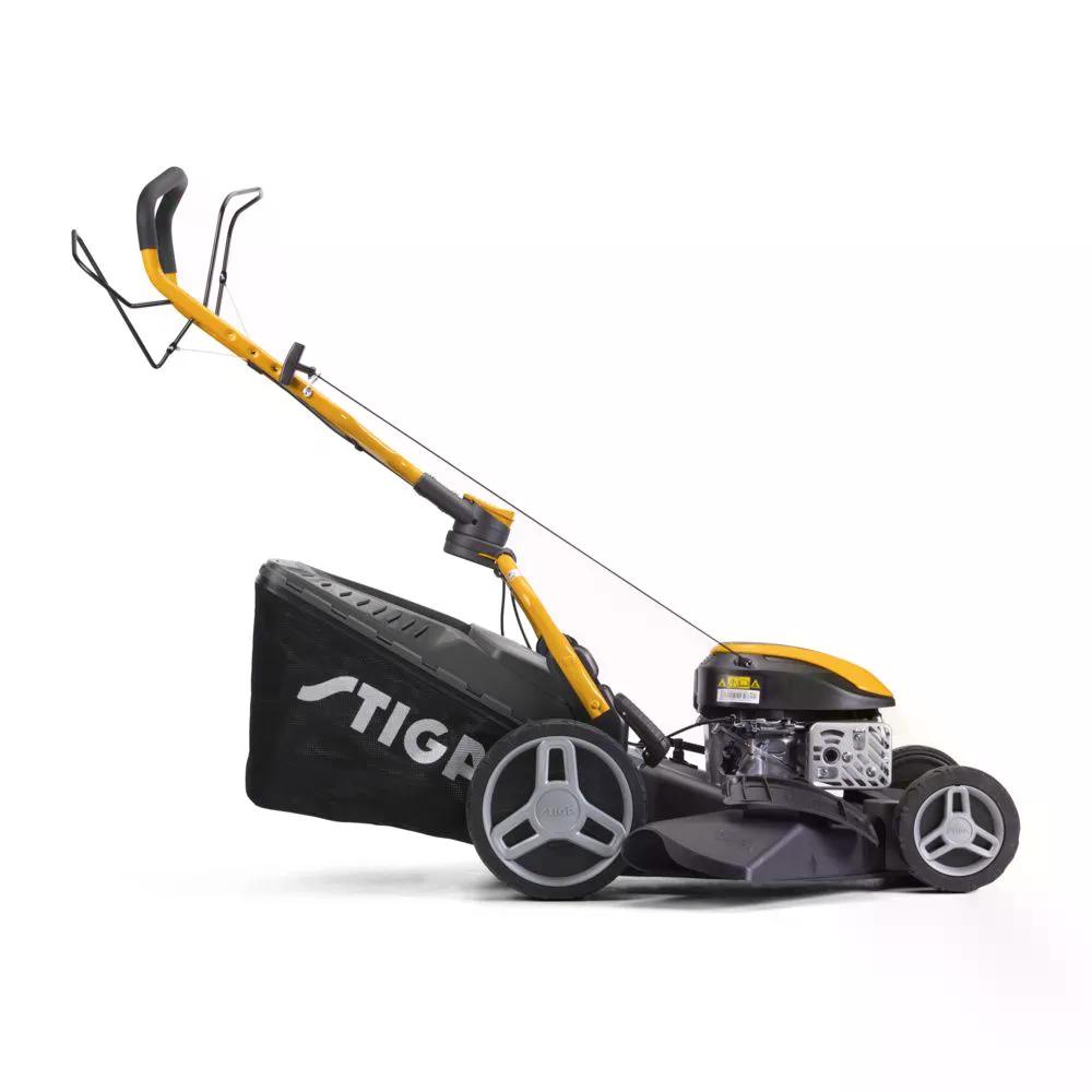 De zelfrijdende STIGA Combi 748 S grasmaaier heeft een maaibreedte van 46 cm en een hybride grasopvangbak van 60 liter met graszakvolindicator. Het gegalvaniseerd stalen chassis herbergt een betrouwbare 139 cc STIGA motor met een nettovermogen van 2,20 kW @ 2900 tpm. Met de Combi 748 S kun je kiezen uit 4 verschillende maaifuncties: achterwaartse uitworp, zijwaartse uitworp, opvang of mulchen, waarbij het gemaaide gras fijn wordt versnipperd en als natuurlijke meststof over het gazon wordt verspreid. De gecentraliseerde maaihoogte kan eenvoudig met een hendel worden ingesteld op 6 verschillende standen, variërend van 22 tot 80 mm. De grote (280 mm) achterwielen maken het gemakkelijk om op oneffen terrein te manoeuvreren. Zijdelingse deflector en mulchplug inbegrepen.