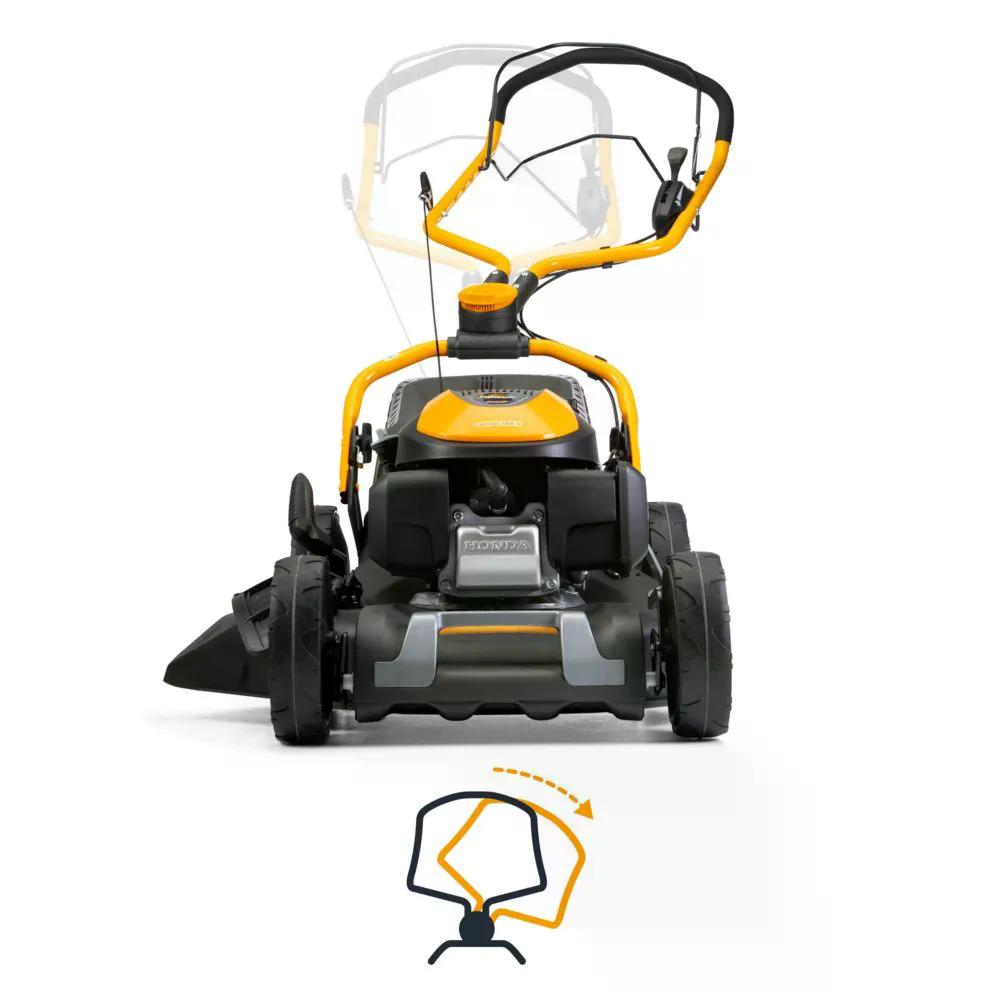 Het gegalvaniseerd stalen chassis herbergt een betrouwbare 145 cc Honda GCVx145 benzinemotor, die garant staat voor geweldige prestaties en betrouwbaarheid. Met de snelheidsvariator kun je de snelheid van de maaier eenvoudig regelen, zodat je hem aan je behoeften kunt aanpassen. De gecentraliseerde maaihoogte is eenvoudig met een hendel in te stellen op 6 verschillende standen, variërend van 22 tot 80 mm. Dankzij de grote achterwielen kun je gemakkelijk manoeuvreren op oneffen terrein. Zijdelingse deflector en mulchplug zijn inbegrepen.