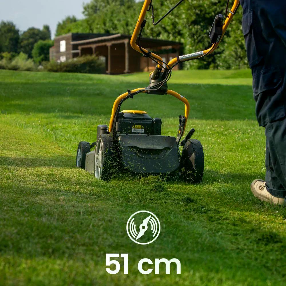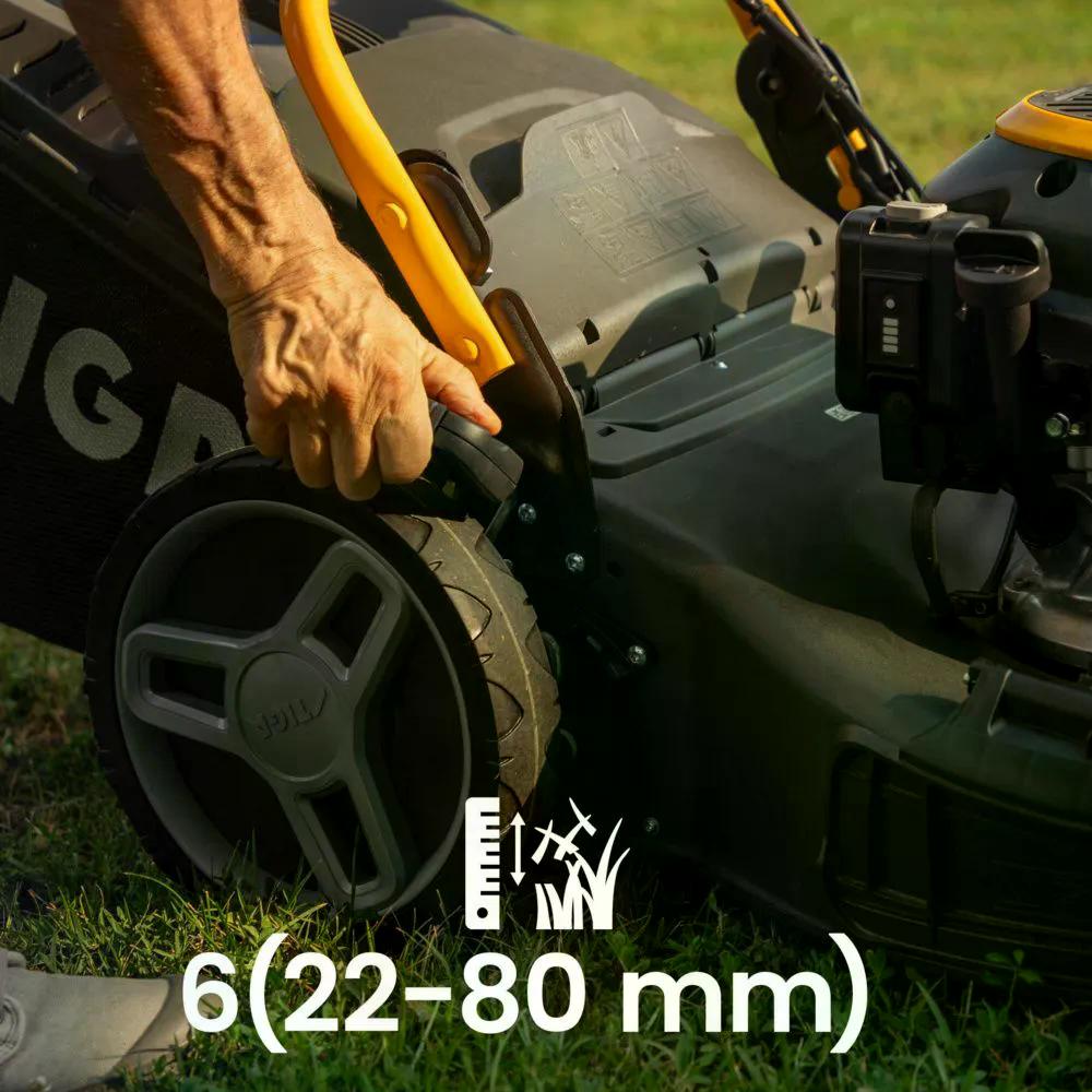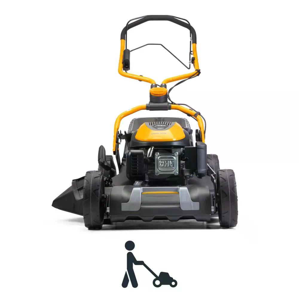 De zelfrijdende STIGA Combi 753 SE grasmaaier heeft een maaibreedte van 51 cm en een hybride grasopvangbak van 60 liter met graszakvolindicator. Het stalen chassis herbergt een betrouwbare 166 cc STIGA motor met een nettovermogen van 2,60 kW @ 2900 tpm en elektrische start. Met de Combi 753 SE kun je kiezen uit 4 verschillende functies: achterwaartse uitworp, zijwaartse uitworp, opvang of mulchen, waarbij het maaisel fijn wordt versnipperd en op de grond wordt gedeponeerd om de bodem te bemesten. De gecentraliseerde maaihoogte kan eenvoudig met een hendel worden ingesteld op 6 verschillende standen, variërend van 22 tot 80 mm. De grote (280 mm) achterwielen maken het gemakkelijk om op oneffen terrein te manoeuvreren. Zijdelingse deflector en mulchplug inbegrepen.