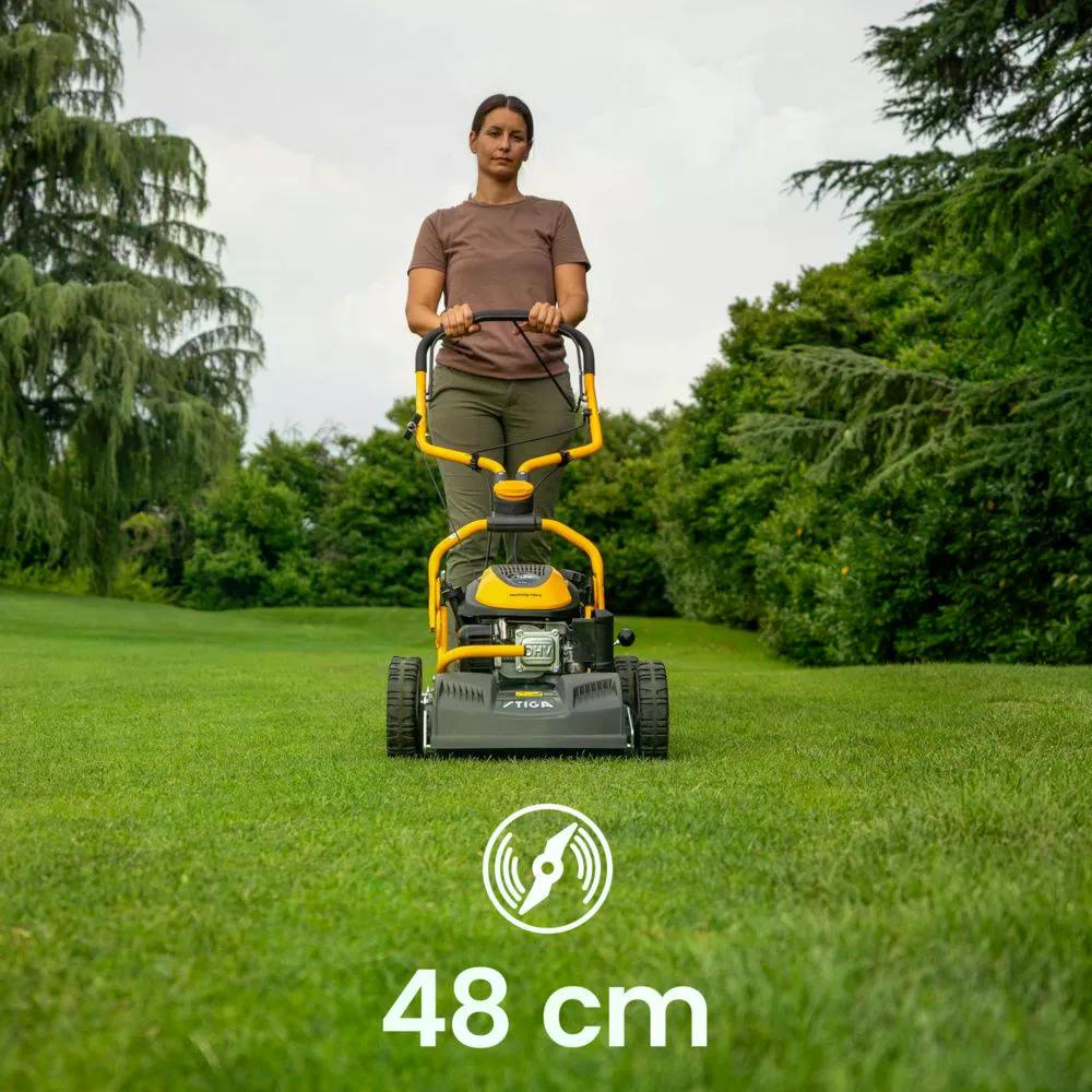 De zelfrijdende STIGA Multiclip 750 S grasmaaier heeft een mes van 48 cm en een STIGA motor van 166 cc met een nettovermogen van 2,60 kW @ 2900 tpm. Het mulchsysteem zorgt voor een precieze snit en versnippert het maaisel fijn voordat het als meststof op de grond wordt verspreid. Het stalen chassis heeft een maaibreedte van 48 cm. De speciale ergonomische handgreep kan zowel in hoogte als in hoek worden versteld, zodat je het gazon comfortabel kunt maaien en de moeilijkere hoeken dicht bij muren en struiken kunt bereiken.