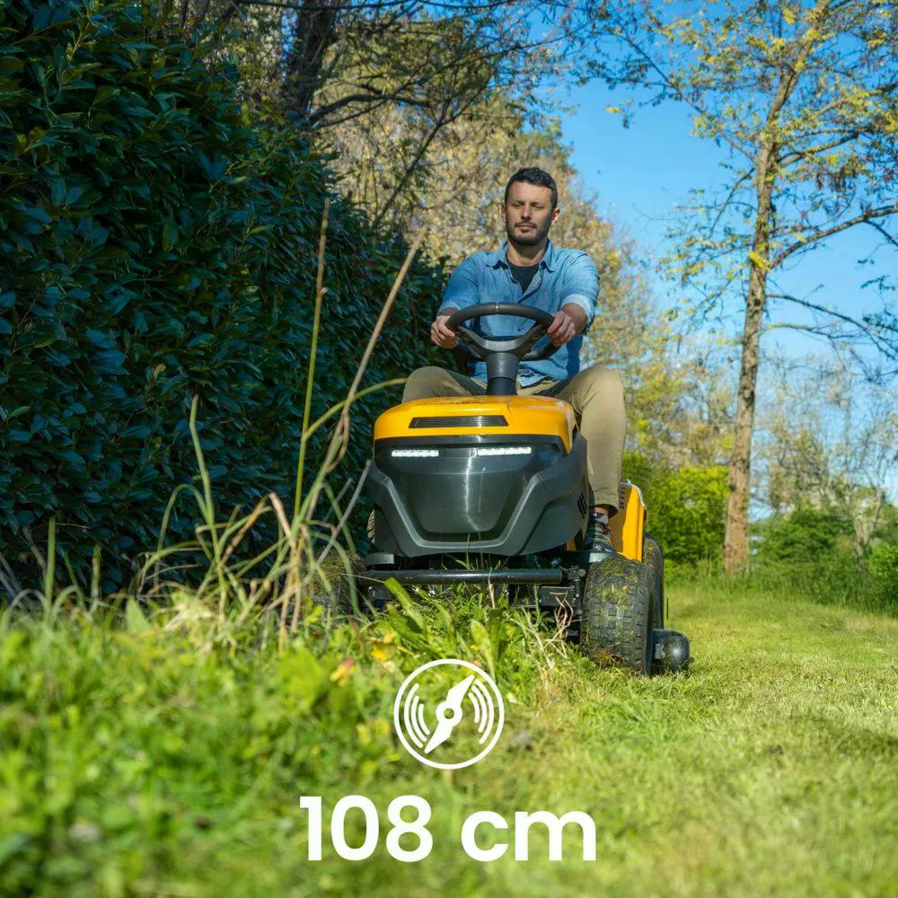De STIGA Tornado 5108e is de perfecte elektrische tractor met zijuitworp voor middelgrote tuinen tot 7.500 m2 - met 1 batterij. Uitgerust met modulaire ePower Pro batterijen voor onbeperkt maaien. Stil, soepel en eenvoudig te besturen met één pedaal en een digitaal dashboard, levert hij consistente maaiprestaties met een 108 cm maaidek, terwijl trillingen en emissies tot nul worden beperkt. Volledig verbonden via de STIGA.GO-app, zorgt hij voor eenvoudig beheer en elke keer weer nette resultaten.
