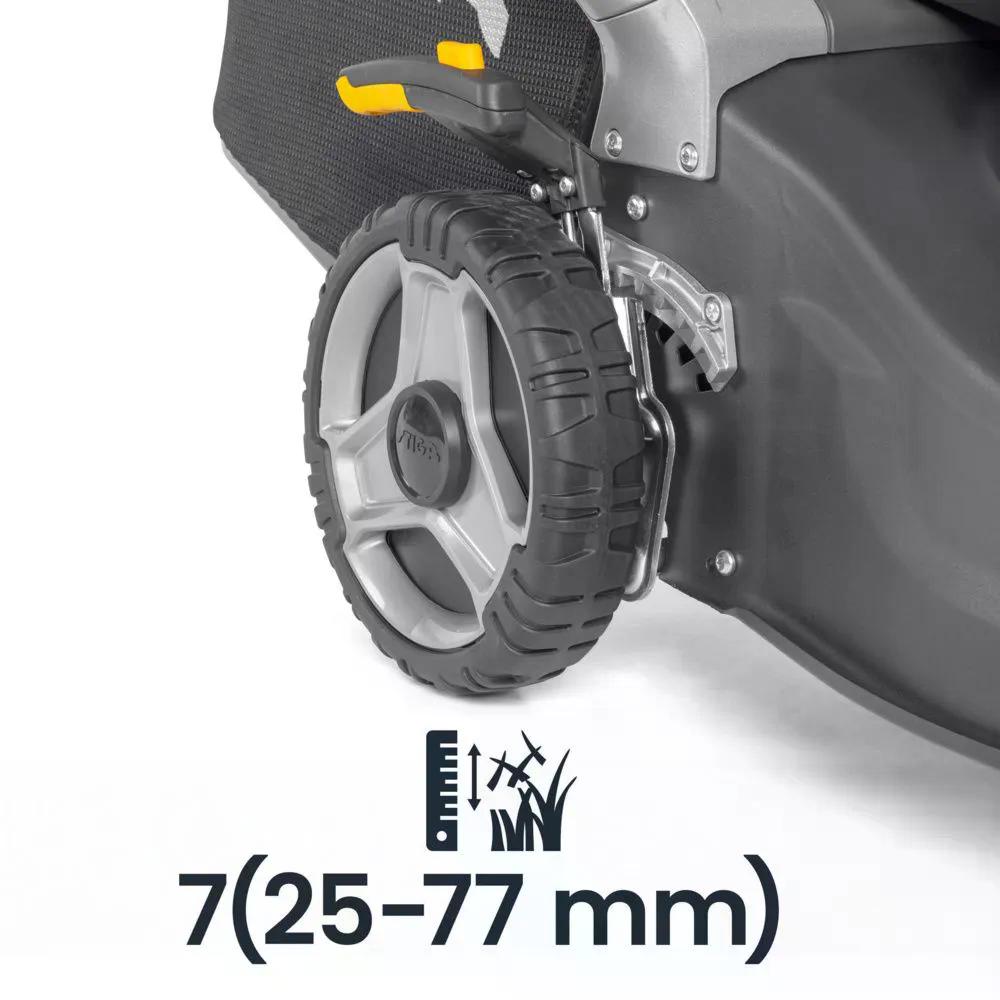 De STIGA Twinclip 950 S is een krachtige grasmaaier op benzine met een maaibreedte van 48 cm en een Extra Collecting (XC) systeem. De Extra Collecting technologie, een combinatie van een innovatief mes met een dubbele snijrand en een ergonomisch hybride chassis van staal en aluminium, levert superieure opvangprestaties met minder inspanning voor zelfs de meest veeleisende taken. De Twinclip 50 S is een efficiënte, betrouwbare machine die wordt aangedreven door een 166 cc STIGA-motor met een nettovermogen van 2,6 kW @ 2900 tpm. Bovendien combineert het 'One Motion' systeem een snel te monteren grasopvangbak van 70 liter, een inklapbare duwboom en een centrale maaihoogtekiezer voor maximale efficiëntie en wendbaarheid. De maaihoogte kan worden ingesteld op 7 standen, variërend van 25 tot 77 mm.