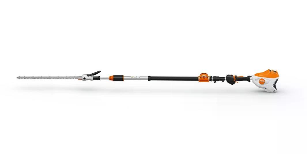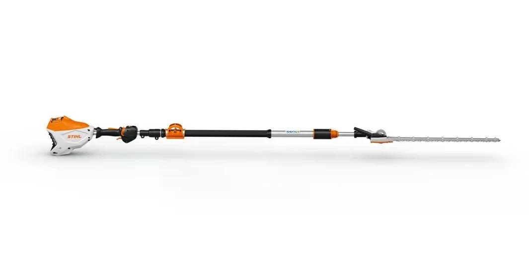 Met de meegeleverde HT-klem wordt snel een schouderriem bevestigd of het optionele STIHL ADVANCE X-TREEm HT-harnas gebruikt voor langdurige, professionele toepassingen. De 145° verstelbare maaibalk maakt snoeien van boven, opzij en onder mogelijk, met een maximale gereedschapslengte van 330 cm. Voor extra bescherming van de accu bij contact met de grond kan optioneel het statief van de STIHL HTA 135 of HLA 135 worden gemonteerd.