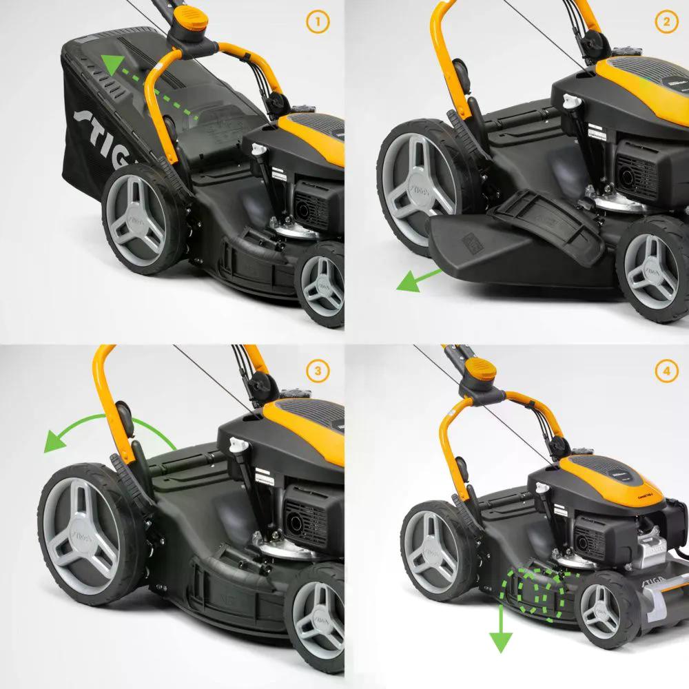 De zelfrijdende grasmaaier STIGA Combi 748 V is de perfecte partner om verschillende grassoorten te maaien in grote gazons tot 1200 m2, dankzij de maaibreedte van 46 cm en het 4-in-één maaisysteem: kies tussen verzamelen, achter- of zij-uitworp en mulchen, afhankelijk van de behoeften van je gazon.