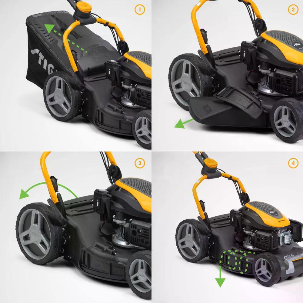 De zelfrijdende STIGA Combi 753 SE grasmaaier heeft een maaibreedte van 51 cm en een hybride grasopvangbak van 60 liter met graszakvolindicator. Het stalen chassis herbergt een betrouwbare 166 cc STIGA motor met een nettovermogen van 2,60 kW @ 2900 tpm en elektrische start. Met de Combi 753 SE kun je kiezen uit 4 verschillende functies: achterwaartse uitworp, zijwaartse uitworp, opvang of mulchen, waarbij het maaisel fijn wordt versnipperd en op de grond wordt gedeponeerd om de bodem te bemesten. De gecentraliseerde maaihoogte kan eenvoudig met een hendel worden ingesteld op 6 verschillende standen, variërend van 22 tot 80 mm. De grote (280 mm) achterwielen maken het gemakkelijk om op oneffen terrein te manoeuvreren. Zijdelingse deflector en mulchplug inbegrepen.