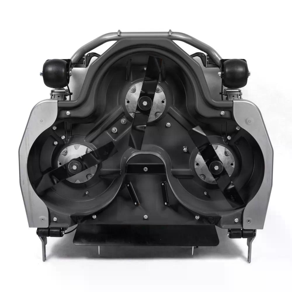 Het Combi 100 Q Plus maaidek heeft een maaibreedte van 100 cm en is geschikt voor mulchen of achteraan uitwerpen van gras. Uitgerust met drie messen. De maaihoogte is elektrisch verstelbaar tussen 25 en 85 mm. Met het QuickFlip systeem kantelt u het maaidek eenvoudig en in minder dan 30 seconden voor comfortabel onderhoud. Het maaidek heeft anti-scalpwielen om de ondergrond te beschermen.