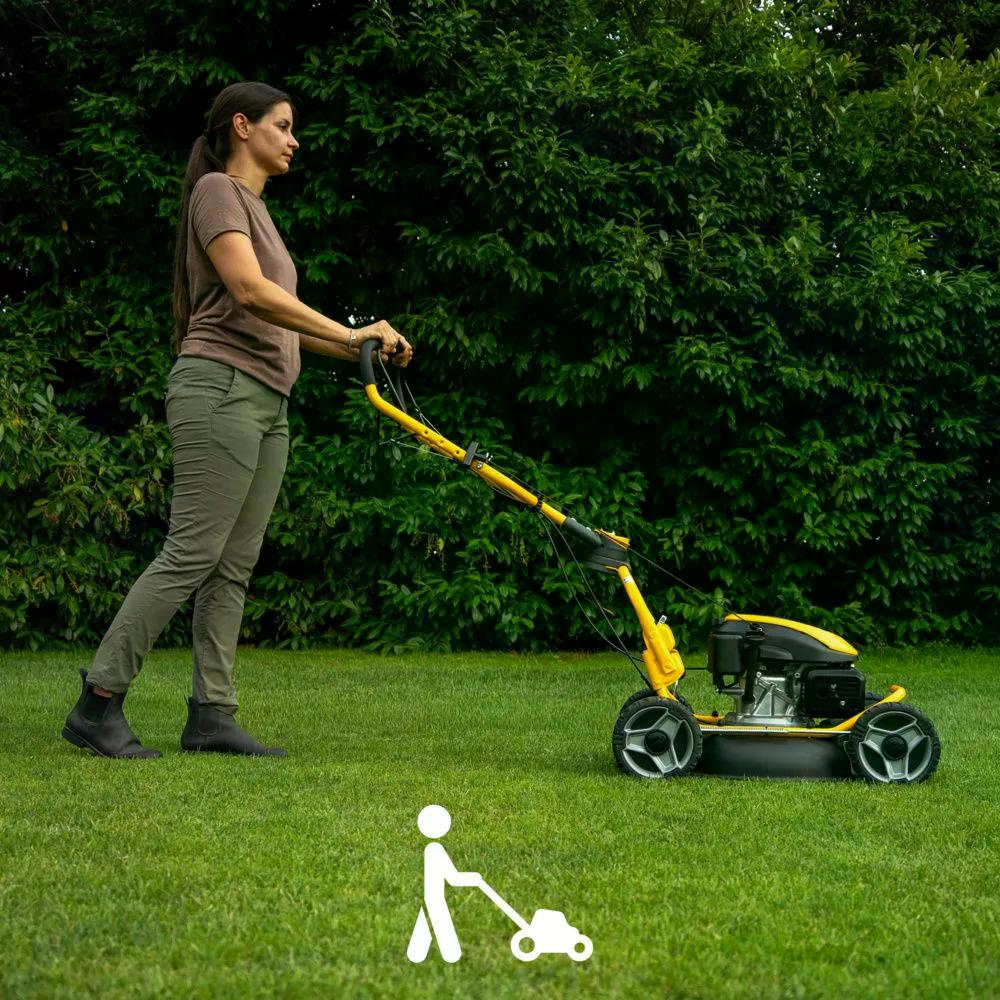 De zelfrijdende STIGA Multiclip 750 S grasmaaier heeft een mes van 48 cm en een STIGA motor van 166 cc met een nettovermogen van 2,60 kW @ 2900 tpm. Het mulchsysteem zorgt voor een precieze snit en versnippert het maaisel fijn voordat het als meststof op de grond wordt verspreid. Het stalen chassis heeft een maaibreedte van 48 cm. De speciale ergonomische handgreep kan zowel in hoogte als in hoek worden versteld, zodat je het gazon comfortabel kunt maaien en de moeilijkere hoeken dicht bij muren en struiken kunt bereiken.