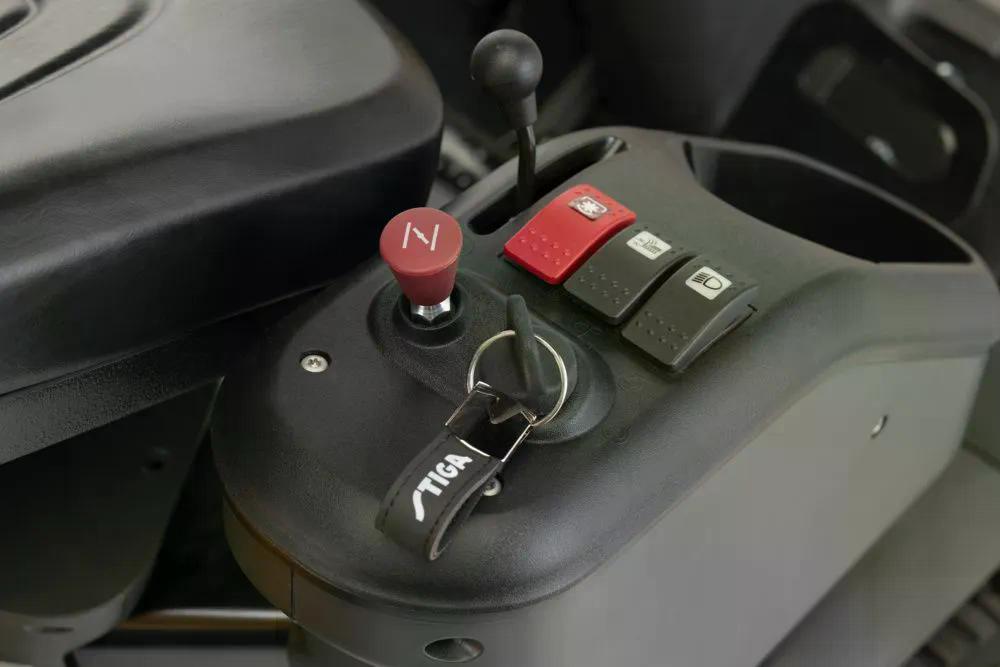 De Park 700 WX wordt aangedreven door een ST 650 Twin Powered by STIGA-motor van 635 cc en biedt ultiem vermogen, gemak en comfort. Zijn vierwielaangedreven Tuff Torq transaxle transmissie, 50:50 knikgeleding met stuurbekrachtiging en innovatieve chassisontwerp zorgen ook voor moeiteloze ritten waarbij je obstakels ontwijkt. Voor je volledige comfort is de stoel met hoge rugleuning voorzien van armsteunen en dubbele parallelle vering. Bovendien heeft het gemakkelijk bereikbare ergonomische dashboard aan de zijkant een handige elektronische hoogteverstelling en een groot vak voor je spullen. Om direct onderhoudswaarschuwingen en updates te ontvangen, kun je je digitale apparaat eenvoudig aansluiten op de Bluetooth-module van de machine. Het aan de voorkant gemonteerde maaidek van de Park 700 WX heeft ook extra brede maaikeuzes van 95 cm tot 125 cm, voor snelle resultaten, duidelijk zicht naar buiten, gemakkelijke toegang tot hoeken en nauwkeurig maaien langs randen. En om het maaidek snel schoon te maken, activeer je gewoon het Quick Flip-mechanisme. Bovendien zorgen de LED-koplampen met groot licht, inclusief brede of diepe standen, ervoor dat je veilig kunt maaien, zelfs bij slecht licht. Als het maaien klaar is, leun je achterover, ontspan je en bewonder je het resultaat.